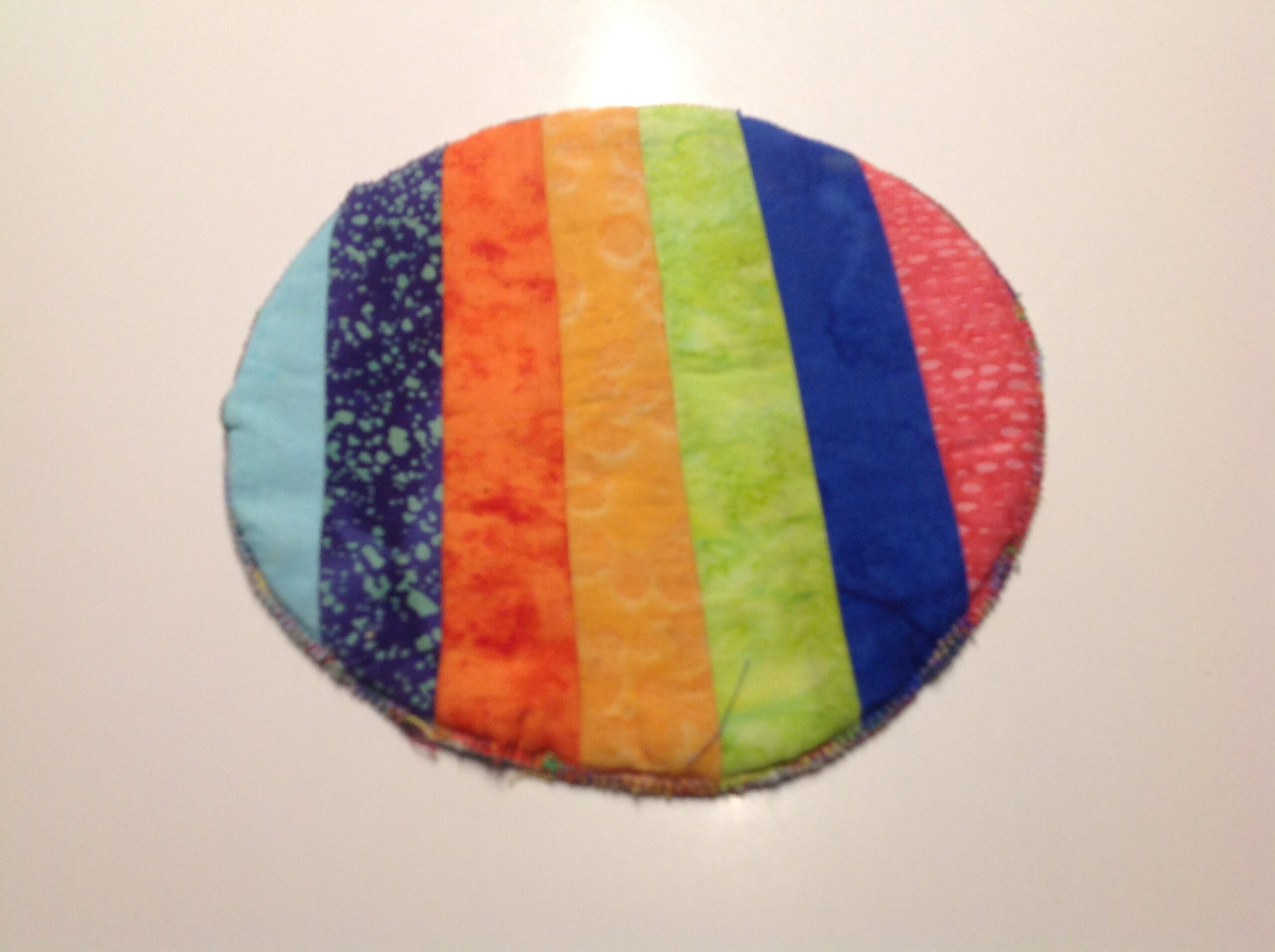 Mooie degelijke en fleurige pannenlap. Staat reuze gezellig in de keuken, omdat hij zoveel kleurtjes heeft.